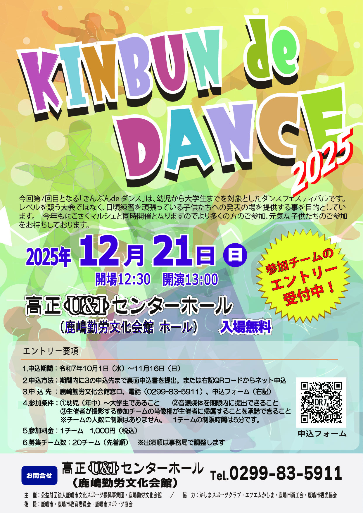 2025/09/25 子どもから大学生までのダンスフェスティバルです。 レベルを競う大会ではなく、日頃練習を頑張っている子供たちへの発表の場を提供する事を目的としています。 今年もにこさくマルシェと同時開催となりますのでより多くの方のご参加、元気な子供たちのご参加をお持ちしております。